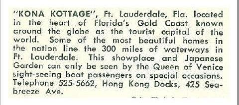 This is part of an article about the waterfront homes in Ft. Lauderdale that discusses the history of the Kona Kottage.