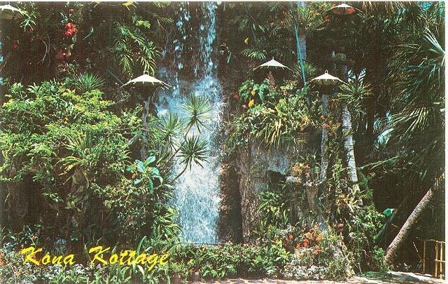 For years, Kona Kottage captured the attention of thousands of vacationing tourists with its Japanese umbrellas, waterfalls, colored lights and tree houses. It also featured a basement bomb shelter equipped to serve up to 60 people should the need arise. Tourist traffic became so heavy around the Kottage complex that in 1965 authorities wound up restricting the number of visitors permitted to tour the grounds.
