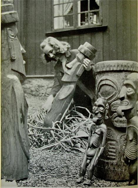 Thor Heyerdahl's wife Yvonne unpacking souvenirs from their journeys together. |