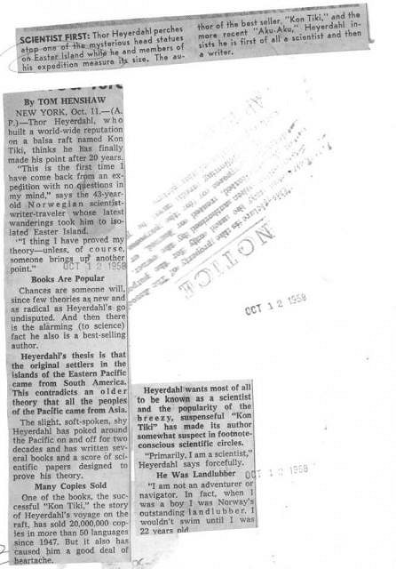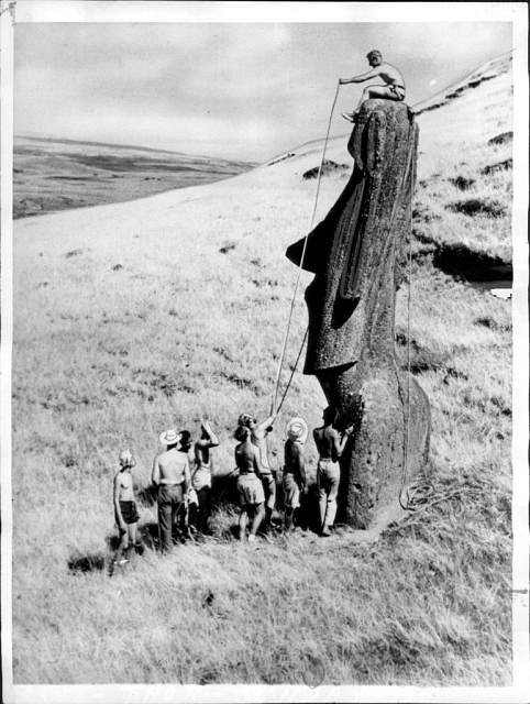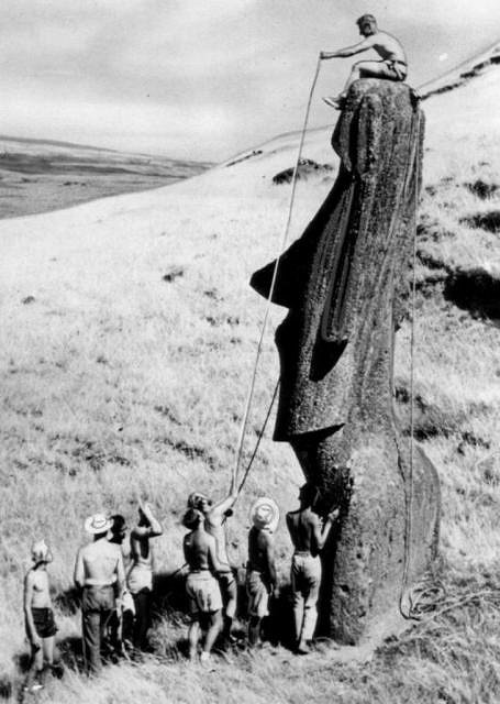Reminds me of the 1959 news wire photo I have with Thor Heyerdahl perched atop the Easter Island Moai.
