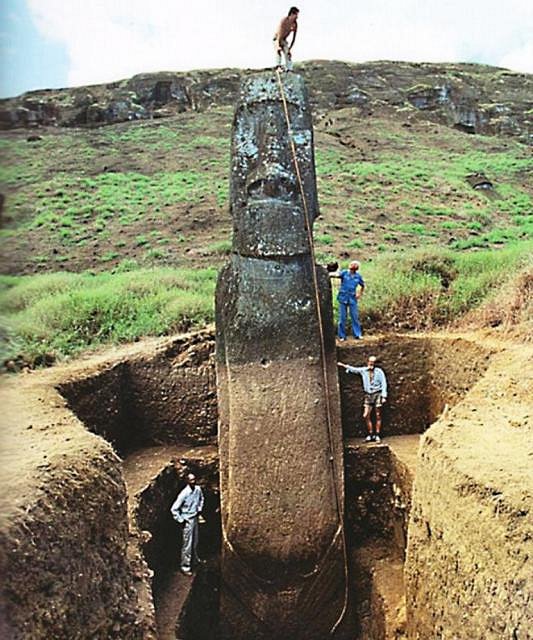This is an excellent opportunity to encourage anyone that might not be familiar with The Easter Island Statue Project to investigate it further. Dr. Van Tilburg has dedicated her life to studying this magical place and its monuments. And, to see photos of the first documented excavations of the Moai (the above photo is from Heyerdahl's 1989 Easter Island: The Mystery Solved) and read more about the entire expedition, see Heyerdahl's Aku Aku of 1958.