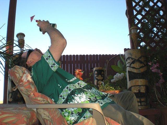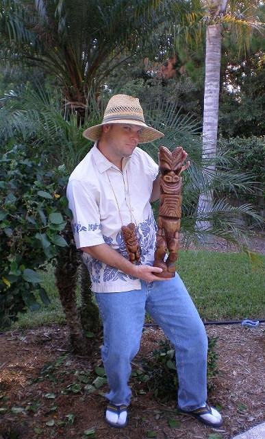 Third, is the shirt. That shirt you have on is only acceptable in the following situations: Casual Friday at the office, or if you are a contrator with your office in the back seat of your F350, it is what you wear to a business meeting(tucked in). Tiki Guys wear shirts that announce that they have arrived. the highest honor for a true Tiki Guy is to be asked to enter a costume contest when he is wearing the same outfit he wears to the grocery store. Try a lot more color. Remember, you want the old you to want to kick the new you's ass!
