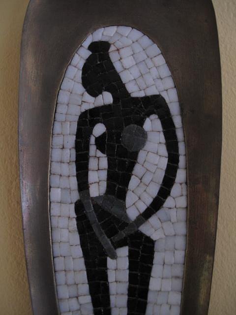 Really dig your cabinets there BigBro...nice. Here is a piece that my mother in-law gave to me about 10 years back. It's a hand made brass platter with a stone mosaic layer on it...it could use a cleaning. I think she told me that she brought it in a NY auction house sometime in the late 60's. I would have to check with her again to verify that...but anyway, It seems to fit into this Pop Primitive thread here. I have always liked this platter...it looks a little African(?) to me in a Modern kind of way :)