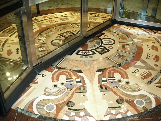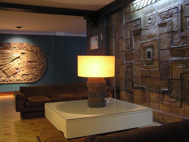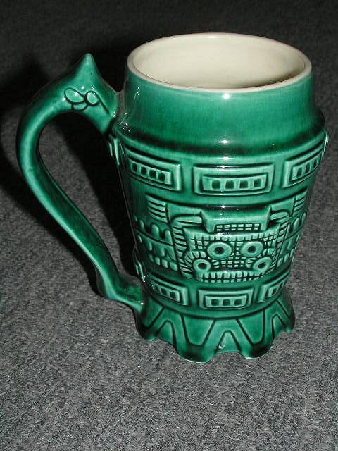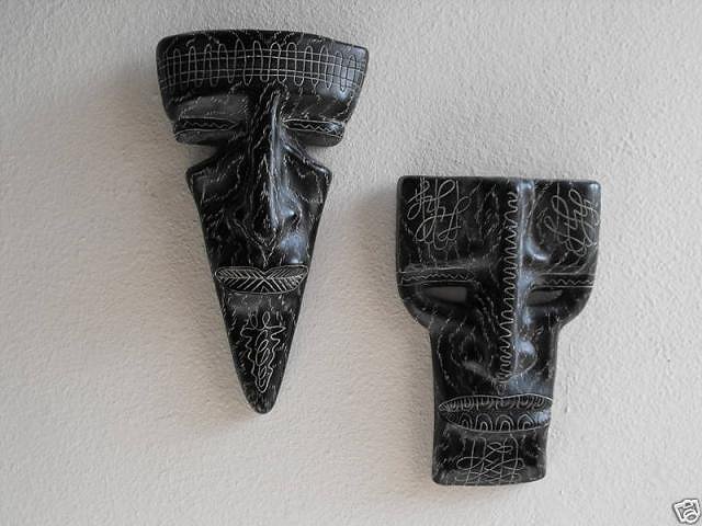 Whoaa, not so fast, young man! :wink: Let's take Greek and Egyptian arts out of that equation, they were regarded as the classic cultures, not "primitive" ones. And for further clarification of what was what in mid-century design: Chinese and Asian art fell under "Exotica". German under kitsch. So as valid sources for pop primitivism (other than Polynesian and Oceanic art) we have: African, Pre-Columbian, North-American Indian, and Eskimo art. Their mid-century application as decor and utilitarian objects is what this thread shall be about. But only if they relate to the spirit of classic Tiki and Tiki Modern. Examples: These two modern primitive (African-inspired) "Ran Su" masks: Postcard of rendering of Aztec Motel, Anaheim: Detail of pool statue at Aztec Motel: American Indian dishware by Sascha Brastoff: