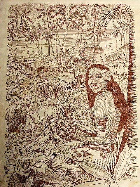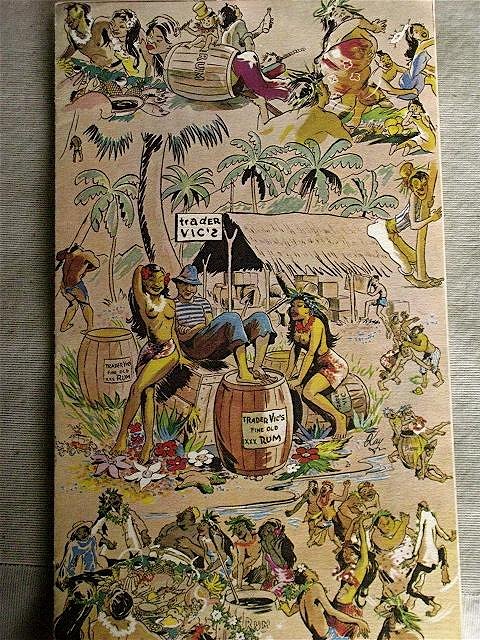 Early 40s Trader Vic menu, with classic Polynesian pop icons, not one Tiki in sight.