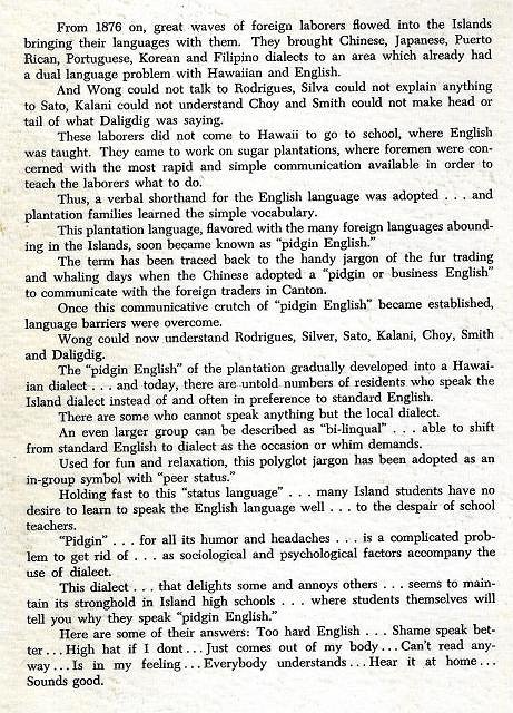 And on the back a nice article on the origin of pidgin: