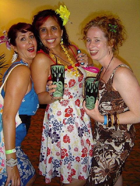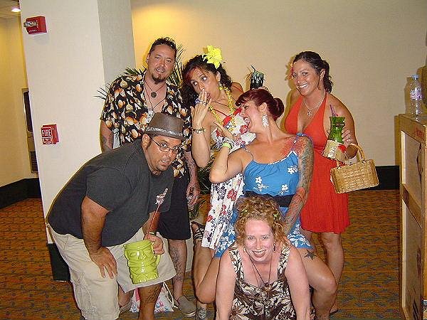 First and foremost, WHAT A GAS!!! Hukilau was off the hook (as the kids say in Bora Bora...so I'm told). Tiki Kiliki, you and your crackpot crew did a fantastic job and now I am possessed! For me, Hukilau was PARADISE FOUND!!! I know I was in a rum fog most of the time, and I know I promised a things to a lot of people. I do remember this, I snapped lot of pics and promised to post them when I returned to my lair in Iki Pohaku. Well, I have watched each and every episode of Judge Judy that I Tivo'd so now it is time for photos! To my friend who were out of focus...I am so sorry I was not sober enough to focus a little better. Many pics were unfortunately lost due to self inflicted incompetence. Other pics are semi fuzzy...as you will see. Then again, some of them perfectly capture the color and beauty of many of my new Hukilau friends. Pardon the occasional self indulgence to get my pic alongside you beautiful folk! Many, many mahalos to the warm spirits that were Hukilau 2010!!!