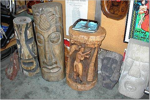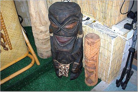 Aloha Friends! Looks like you have been busy since the last time I've been there Bong!! It really makes me happy to see my carvings displayed in your beautiful Tiki Bar. GREAT JOB!! Aloha Al, Great job on the pictures! I've seen pictures of your tiki infested home too....Awesome Brah! It's a big payoff to see my work in saroundings such as Bongs! I hope to see more of my work in Tiki Central home bars! MAHALOZ! |