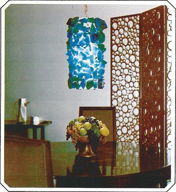 When Pat and I returned to Ohana Luau in the Hawaiian Inn for this past weekend’s New Year’s Eve party, I made a mental note to get a few more photos, presented below. Three of those lamps have been hanging inside the Polynesian show area for almost 50 years. It’s possible that there are a few more that I didn’t notice, as we were pretty busy socializing, drinking, eating and watching the show. As you enter through this door, the first lamp presents itself in multi-color splendor (you can see it through the door glass)...