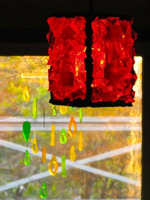 I haven't hung the lamp in its final location, but will take some photos. This lamp has the large chunks, which looks pretty cool. Photos to be posted later this week..... |