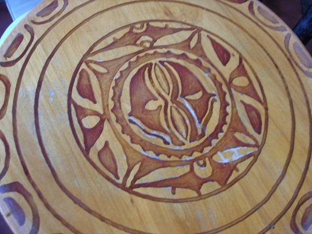 The bar is very eclectic and "homey", for lack of a better word. Photos of the owners, random memorabilia, and wonderful old school tiki touches were everywhere. Here's one of the carved tabletops -
