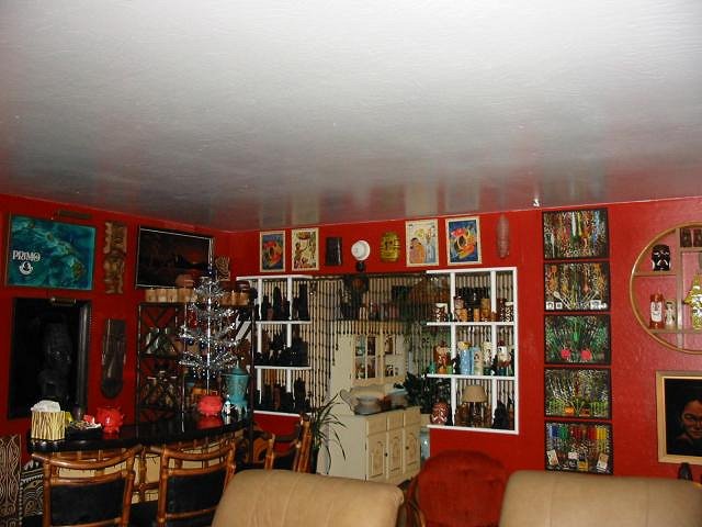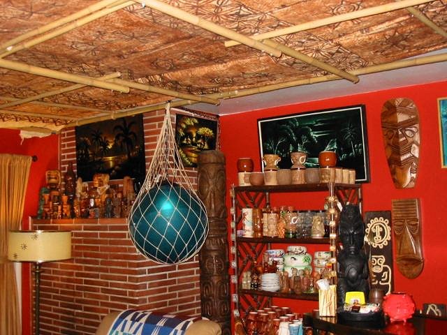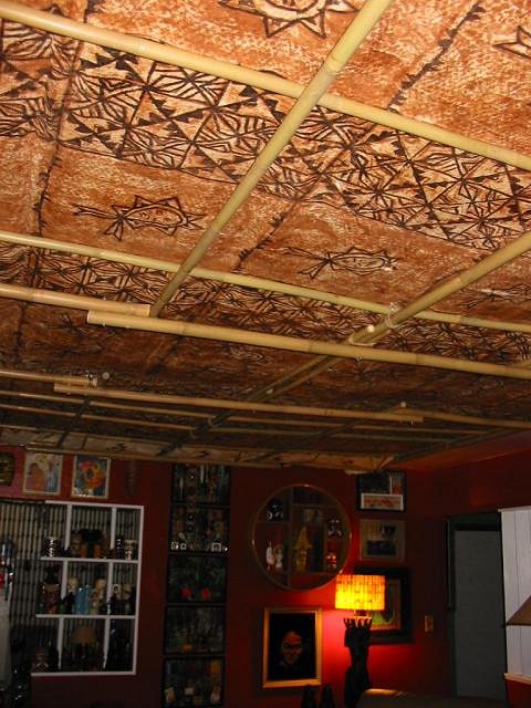 Psycho Tiki, Love the tapa you used on your ceiling. Been working on my own room and searching for some tapa with those colors - only tones of brown. Don't need that big though, only need two about 4'x8'. Will be heading to OA in a few weeks (from out of state), but they have told me over the phone that they only have tapa with black, similar to the smaller one in your post. Can you tell me where you found yours? |