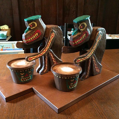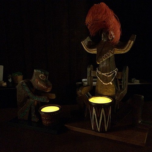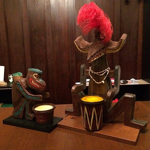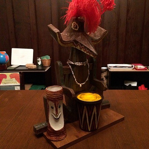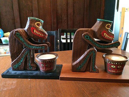 Here they are at home in our "Enchanted Tiki Dining Room", with Quiet Village Radio playing in the background: