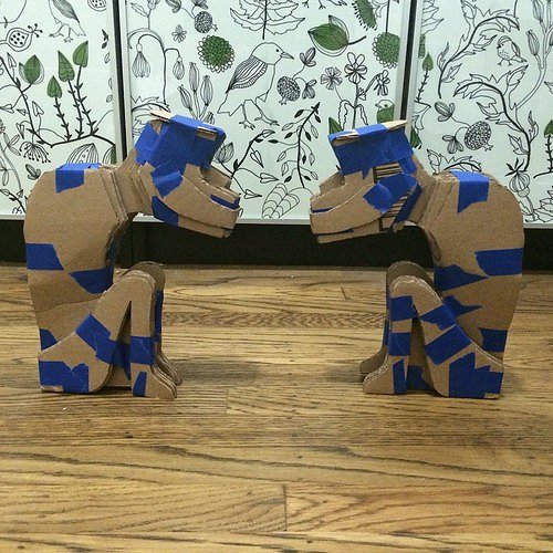 A few days after returning from "the DL" the Pele statue I'd had shipped arrived by mail. She needed a friend, so I was staring at the empty cardboard box and packing paper, and inspiration struck.