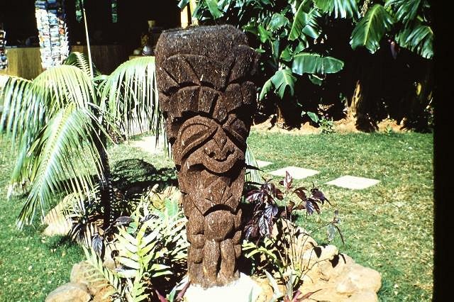 Another tourist slide from Trader Halls with the big fern-wood Tiki.