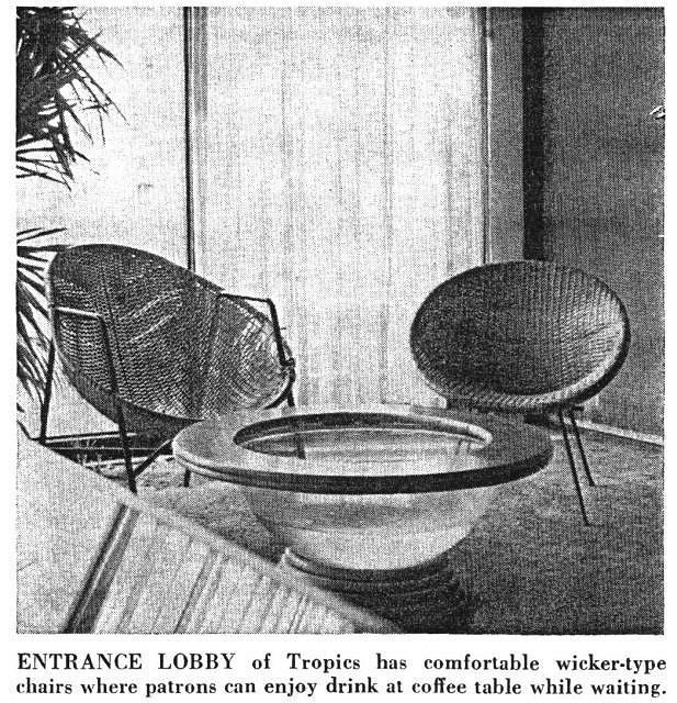I am bemoaning this because I am hoping to use the Denver Tropics as an example of the "Tiki Modern" look in "The Look of Tiki". You must have missed the post, D.C.: Zulu Magoo (Mike Skinner) has posted these posted these fantastic photos here (under Denver Tiki) and Michelle Baldwyn wrote an article about it in the Denver Tiki Fanzine: