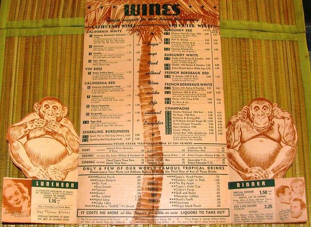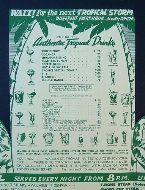 A menu from The Tropics sold on ebay a while back.