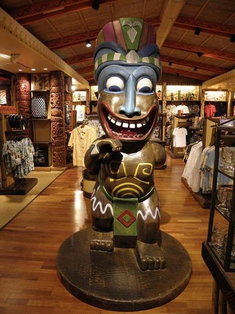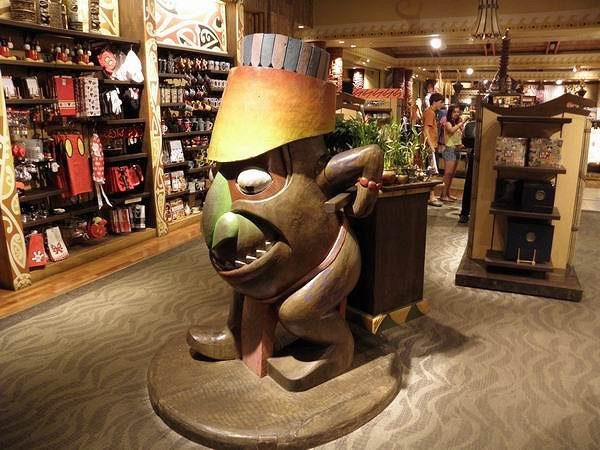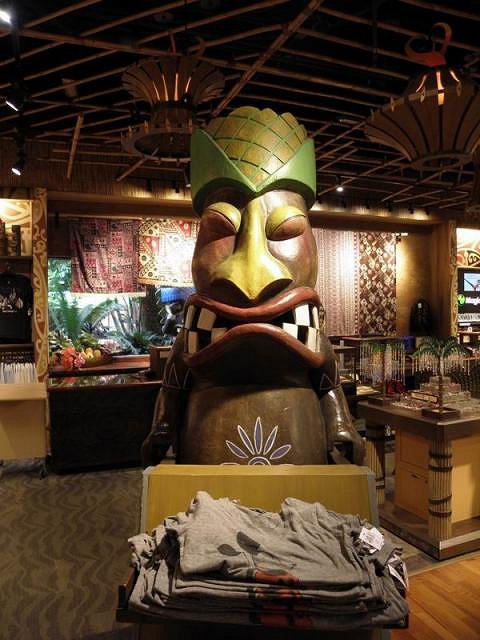 Four of these guys sat atop each of the arms of a merchandise rack. The level of detail in the store, and the amount of custom fixtures, is amazing. This is the modern Disney style of design – saturate the shopper with a cohesively designed look and feel and make shopping interesting and fun. (Lots of home tiki bar design ideas are to be found in here!!! That’s one of the reasons I took so many pictures.)