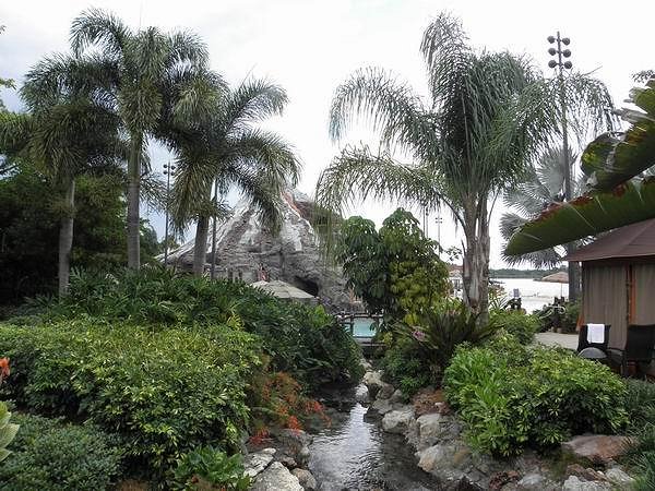 And back out to the pool and volcano.