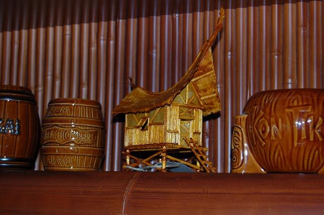 Chris (TornadoTiki), thanks so much for posting your photos. Hope you and George (TikiHardBop) are having spirited times this weekend in New Orleans at "Tales of the Cocktail." I'm looking forward to our next soiree at the Blowfish Bar, beach included at no extra charge. I see that Christina (metikigal) posted her reflections of the visit and some photos in her blog under "Micro Road Trip" at... http://themetikigal.blogspot.com/ teaKEY, appreciate your visit here. Julian's mural is indeed magic and must be seen in person to fully appreciate. If you're ever in the Central Florida vicinity, let me know... Tim (Swanky), we adore that Mai-Kai Mystery Bowl girl; you can see that she's in her own little alcove. Love to have you visit the Blowfish Bar anytime... maybe you can help me deplete my stock of St. Elizabeth Allspice Dram by way of Jasper's Jamaicans. -Tom |