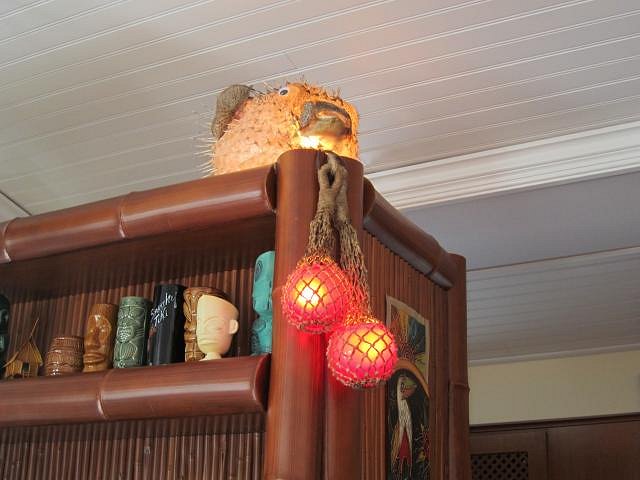 A Japanese glass fishing float has recently joined the iconic puffer fish atop the bar shelf unit, and Bosko masks are en route via tramp steamer after rendezvous at a port near Escondido.