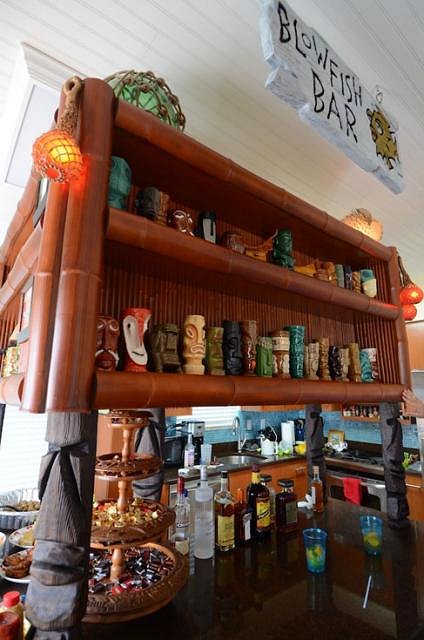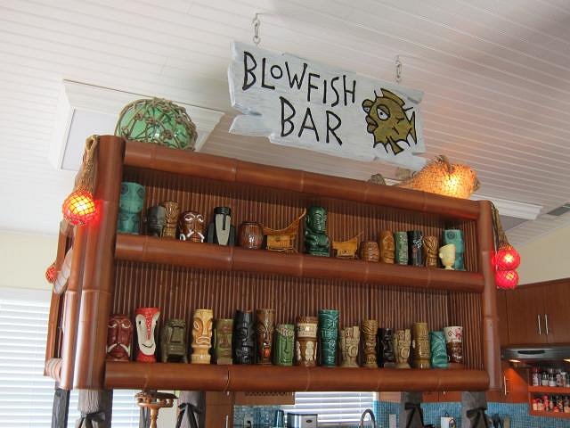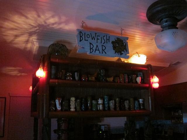 The Blowfish Bar is now home to a beautiful vintage style mini tiki hut from the exotic isle of Kalamazoo, Michigan. Mahalo, uncle trav!