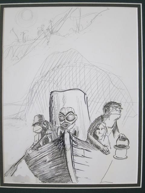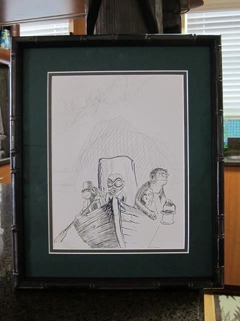Chris, mahalo nui loa for your comments! For those into contemporary Tiki art, one need look no further than Tiki Central’s own membership... what an amazing diversity of talent! I like so much of what I see that it would be easy to fall prey to hoarding. I’m hoping to stop short of clutter, but may have lost that one already. Regardless, as I contemplate new works of art, it’s necessary to remember that a beach house, any house for that matter, only has so much wall space. The recent creations of Robert Jimenez (zerostreet) have been particularly appealing, so I was pleased to receive the art print and original concept sketches of zerostreet’s “The Fisherman God’s Dilemma” here at the Blowfish Bar...