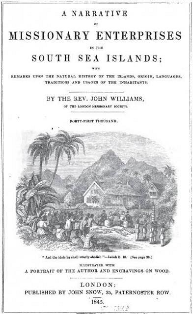 This engraving of Reverend Williams came from another book titled The Martyr Missionary of Erromanga by Ebenezer Prout; if you guessed from the title that things didn’t end well for the Reverend, then you’d be quite correct...