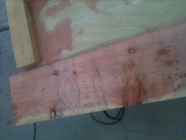 There are a couple of places where a carved panel will sit nicely. So I got to it this weekend. Sketched out