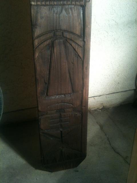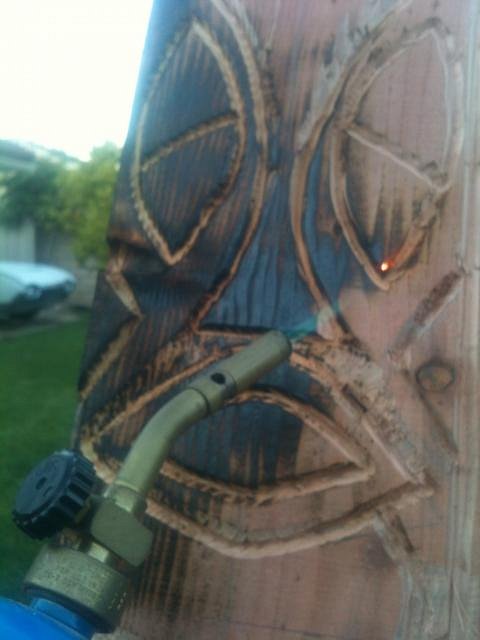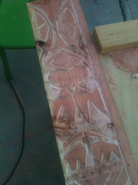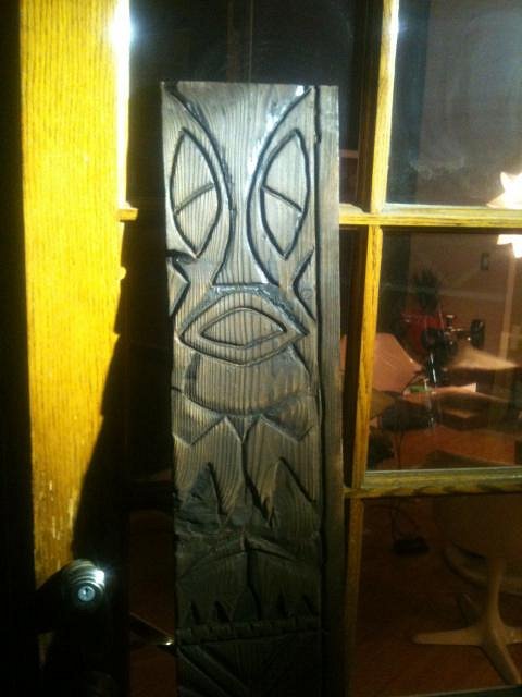 Did a little more carving and burning on my big tiki, yesterday...
