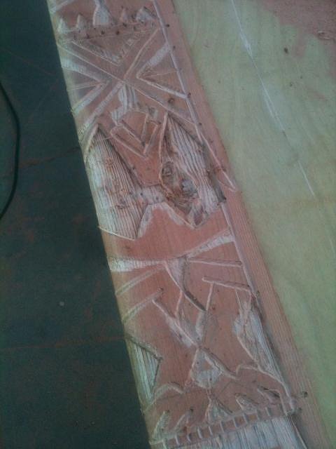 The official build happens at the end of July '12, but I've started carving trim and panels so that we can just assemble everything with the time comes to put it up.
