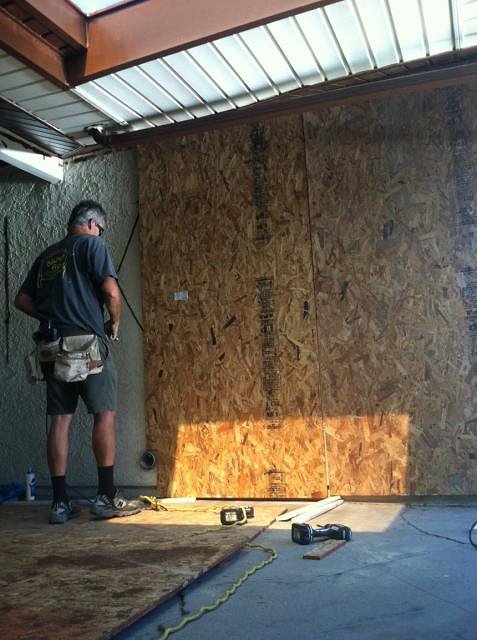 The whole interrior has the plywood walls up now