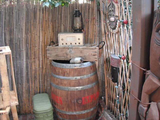 old foot lockers work great for storage of cleaning supplies and tools as well as non tiki items, who wants to see pine sol and bottles of tiki fuel just laying around?? lol the small wooden British ammo box works great as a mini cooler, it has a metal liner and can hold ice and several bottles of water or beer