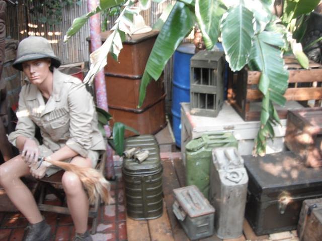 lol funny thing about the standing mannequin, about 15 years ago I bought him from a friend and set him up in my then Vietnam war room, which didnt have a door on it at the time, his left arm was up like he was saluting, well, when i got home late that night from work at midnight, I totally forgotten about him, I was walking down the hall way when I look over and see a half naked man standing there with his hand up, need less to say i screamed like a little girl and then attempted to bitchslap him, sadly I put a hole in his chest and broke his arm off !!! |