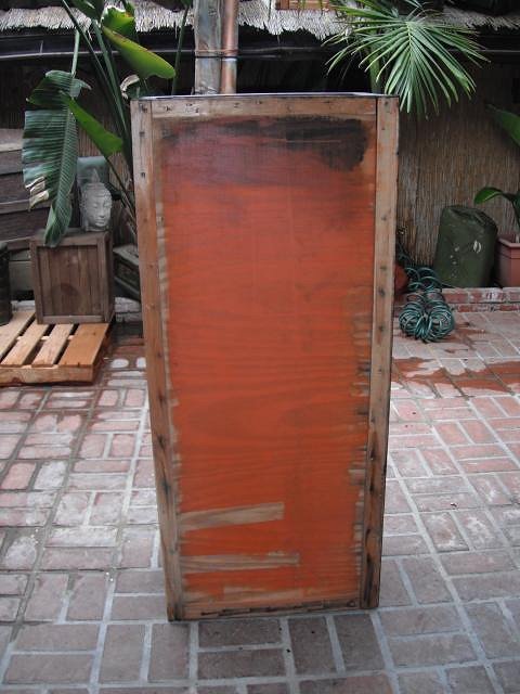 came across 10 new crates last weekend, of course getting them home in my small truck was no easy task, my vehicle looked like the car in "I love Lucy" when Ricky buys a new car for their trip to California and fred packed it!!! thought I was going to have a heart attack looking in the rear view as old wood crates shattered all over the 405 fwy !!! this is one of four I found about a month ago, spent all day hand sanding the orange paint off of it today...