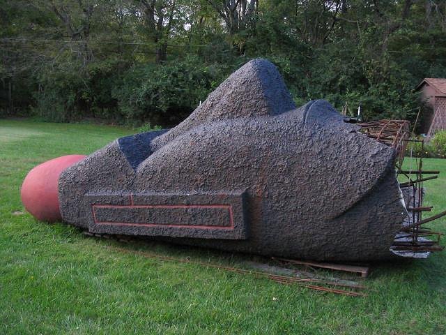 Maybe you should leave a small opening at the bottom. Then, when it is completed and standing upright, a few tiki-philes could crawl inside with their mai-tais, and soak in the energy of a giant Moai ... or plan the demise of your secret anti-tiki arch-enemy Or even better, place a small bar inside -- that would give new meaning to the term 'rebar' Things you should not do with the Moai