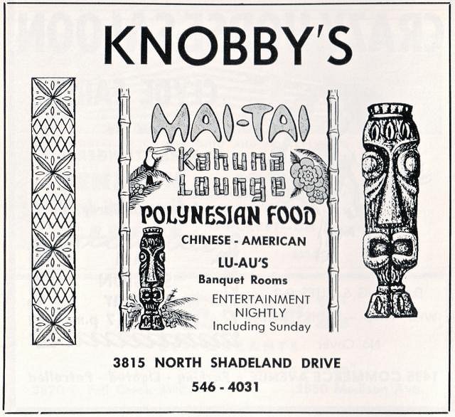 I came across this ad online with Knobby's Mai Tai and Kahuna Lounge listed in the title.