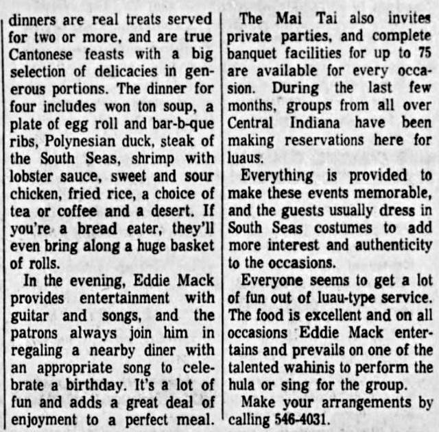 Mai Tai Restaurant in Indianapolis
