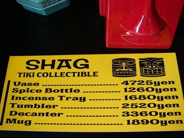 I got an email from shagmart about an hour after my order went through asking which Decanter I really wanted. The wrong one showed up on my receipt. Seems they caught on quickly that their shopping cart had them switched. Can't wait until they arrive. I'm hoping to trade my Elua Decanter set for the Elua Vase. Hey Kingstyedie, I could use a shag mug or two, I need a Green Mondo! MauiTiki [ Edited by: MauiTiki 2008-01-11 23:42 ] |