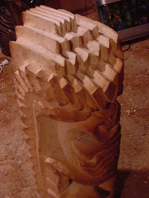 I wanted to let you know how impressed I am with your work on the Gansta Ku. nIt really is a beautiful piece. Thanks so much. I have it up next to my BeZart. Additonally, thanks for the Tki Guy pendant. What a wonderful prize for guessing the sunset date. I'm honored to have him and to be able to be a tiki guy imposter when I need to. Thanks again for the carvings. They are some of my alltime favorites.