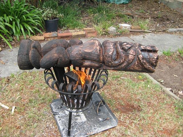 Howdy All,Man!! the responce I've received here is awesome Benz-I spoke to my bro/inlaw who runs a shopfitting busines Surf'n-yeah your right.I wear a mask when using this timber Tduddy-Cheers Dude thanks for take'n a look. LLT-Glad you like,Im quite a fan of your's as well. Grog-Watango dig grog like. Here's some pic's of a piece I carved for a bushfire benifit at Kustom lane.