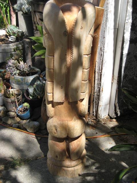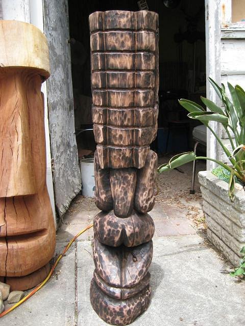 WOW, Nice Chops. Great looking Tiki's. My hats off to ya for carvin Eucalyptus. I have carved some of that myself. It's very hard wood, but it holds the detail well. Keep up the good work! |