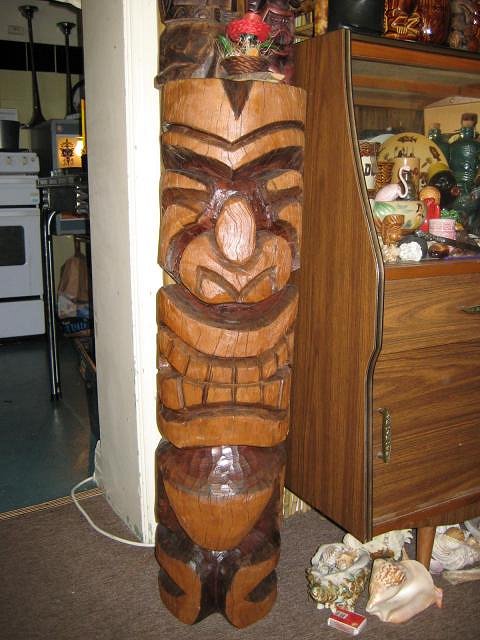 Liana-Hmm sunny q/land!It's start'n to get pretty darn chilly tikimecula-thanks for the comps,not many fan palms round here so carv'n Alohastation-your right this site is great.Cheers Gman- Thanks for stop'n by and check'n out my stuff. BigT-This ones carved from spotted gum,hard as stone.Glad you like. Mudbone- the shrunken head on the wall is made of plastic and came on a Cheers Watango |