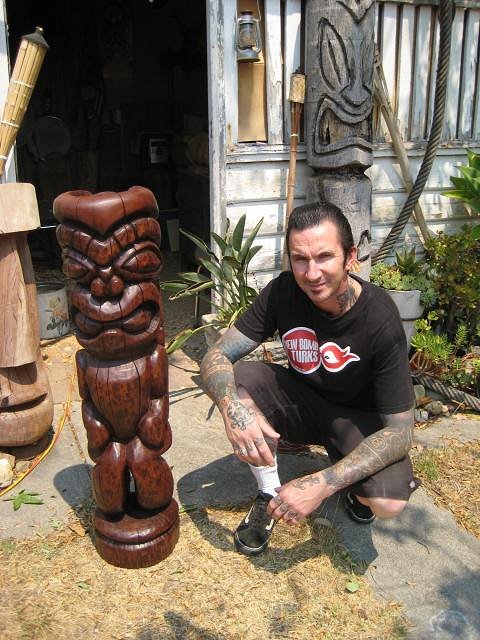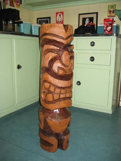 Very nice carvings mate, you've got a nice style! Judging by the tatts, 60s hubcaps, vintage skateboards, and Dyno calender Im guessing you're a kustom kulture kinda guy - got any cool toys? :D EDIT: How the f*** did I miss that you're an Aussie! Awwwwwesome! Is it your tikis that have been featured in some of Kustom Lane's shows?