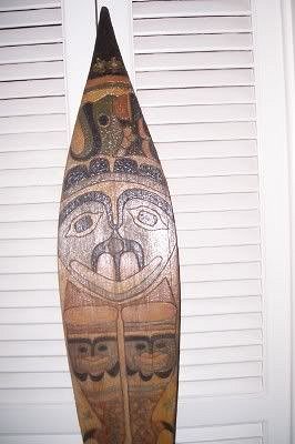Aloha... I have a few items I have been wondering where they came for for a while now. I was hoping someone here can give a stab at the origin/basis of them. I think this first one is easy. This paddle belonged to my Great Aunt, who was a world traveler. I'm not alone in thinking it came home with her from one of her cruises to Alaska.
