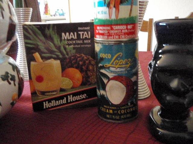 Found these goodies under Mrs. Lurkers Aunts' home bar. Love the old CoCo Lopez and Coconut Snow! And the powdered Mai Tai Mix is classic! I especially like the old label rum batter...still unopened! |