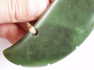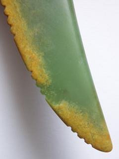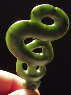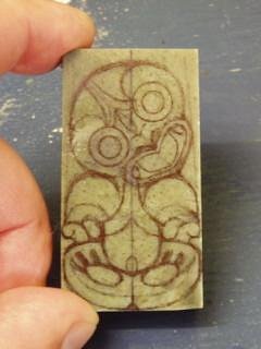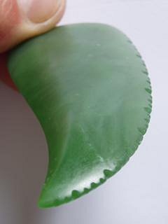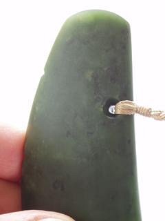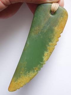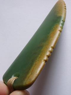 And another recent Rei-pounamu (jade tooth). This piece also utlises the oxidised stone for effect - although the jade from this particular source is in a different class altogether, most notable for its very hard/usable/attractive outer material (this oxidisation process being the death of most other stones).