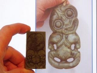Kia ora All! Time to update. Still nothing but a stringline showing where the new workshop will be (waiting for council approval..) but actual money has been spent, so Id better see some action soon, haha. A few bits n bobs from recent months: Ill start with this one seeing as how theres only one random pic of her floating around..? pauashell eyes: This wahine has had quite a journey: she began life as a simple toki/adze form, but the stone was so nice that I reworked into a hei-Tiki pendant. Somehow I never felt she was quite finished so in a rare move I cut the cords off and reworked again, adding ribs, changing mouth and defining a few features: