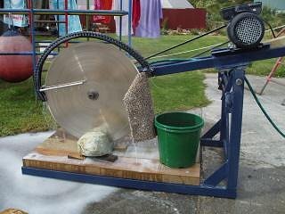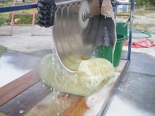 And finally a couple of pics of rock-chopping action! Screaming lapidary porn, yeah. 24" blade, 2hp motor, 1800rpm..