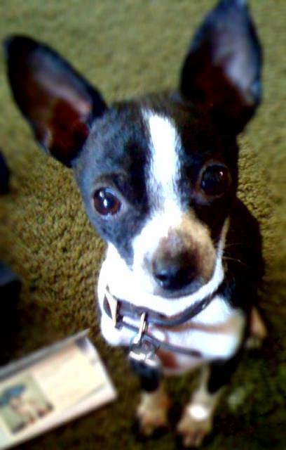 My friends were fostering a sick chihuahua from the pound. Someone had abandoned him, he was left starved and covered in mites. They thought he was a Mexican hairless because his skin was so bad he was bald. I always said I'd never own a little yappy dog, "If it can't catch a frisbee, then it's not a dog." A year ago I became a hypocrite as I could not stand the thought of this little thing going back to the pound.